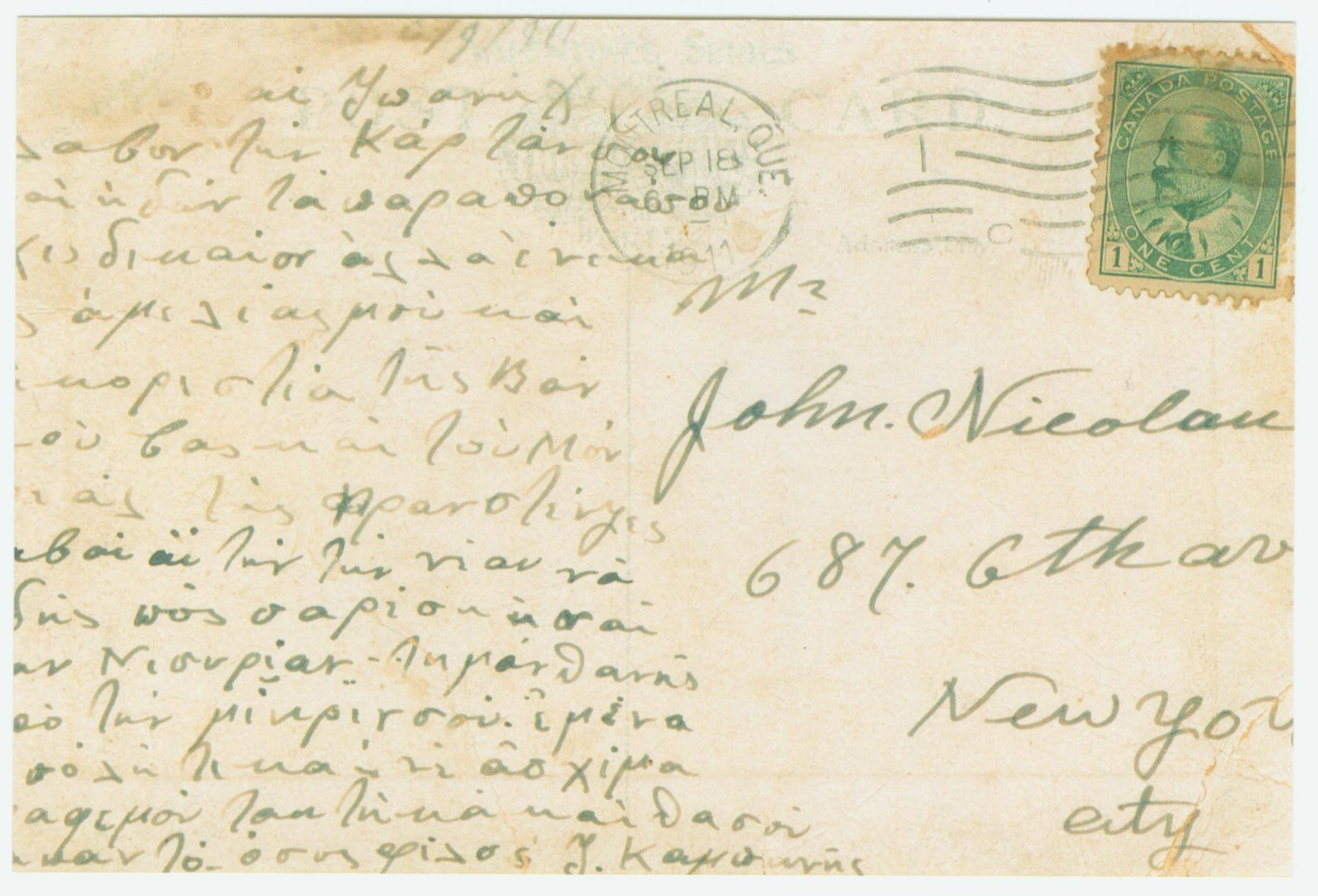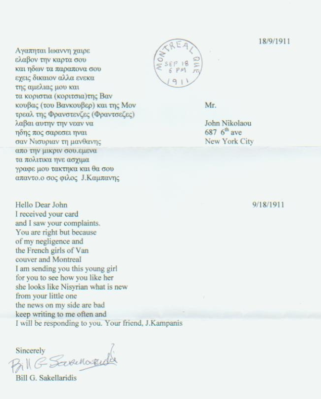 Post Card from John Campanis September 18, 1911