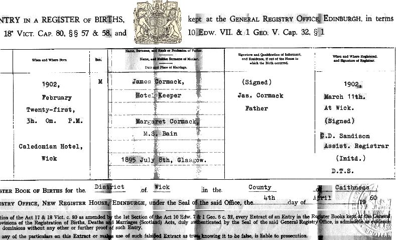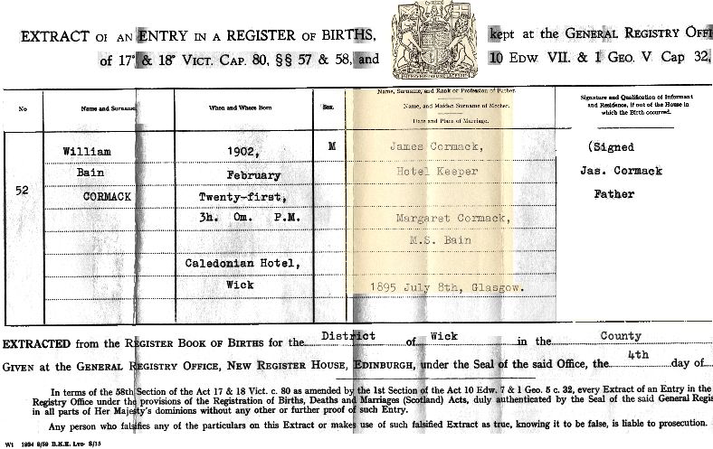 Birth of William Bain Cormack